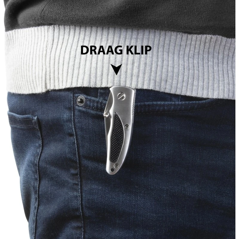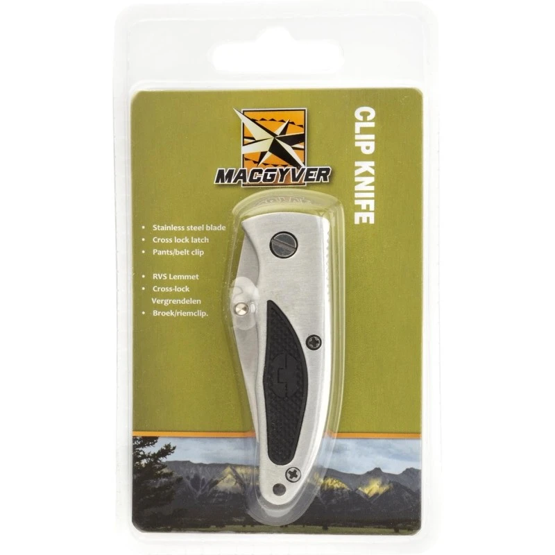 De MacGyver Clipknife is gemaakt om te dragen aan de binnenzijde van een broek, werkoveral of bijvoorbeeld outdoorkleding. Door de slimme clip steekt het mes altijd iets uit de zak en kun je het mes dus snel en makkelijk pakken. De โClipknifeโ van MacGyver is gemaakt van RVS en heeft naast een hele stoere uitstraling ook lekker veel grip dankzij het rubberen inleghandvat. Veilig is dit gave zakmes trouwens ook. Crosslock vergrendeling zorgt ervoor dat het mes niet weer kan inklappen terwijl jij snijdt of hakt.
